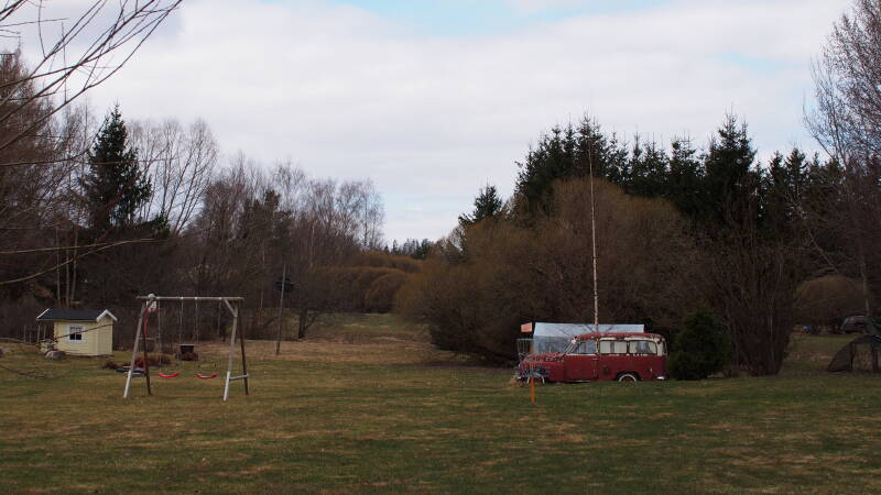 Muistan tämän nokkamallisen Volvon jostakin lapsuuden-varhaisnuoruuden ajalta, kun tuonne hevostallin suuntaan tehtiin tiepohjia ja muistaakseni laitumia. Aluksi Volvo oli siellä ihan muina kuorma-autoinaan, mutta jossain vaiheessa hytti, keulapellit, moottori ja lava katosivat uusiin urakoihin. Ehkä lopusta suunniteltiin jonkinlaista lanaa, vai jäikö tuo N-sarjalainen vain yksinkertaisesti ojan väärälle puolelle? Pyöräilen tuosta ohi aina toisinaan, mutta yleensä Volvo kyyhöttää parjon paremmassa piilossa heinikon ja nokkosten peitossa. Jonnekin tuonne hukkasin kerran myös ajolasini, joita en nytkään löytänyt (enkä sähköpaimenen vuoksi alkanut konttaamaankaan). Viileälle pyöräilylle paikka antoi kaivatun lämmittelyhetken, kun aurinko tilapäisesti pilkahti näkyviin.